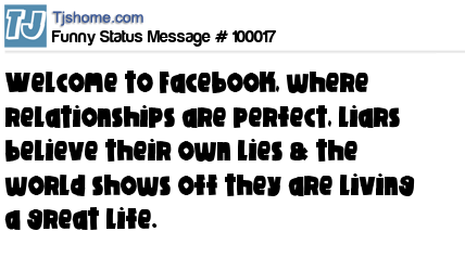 - # 64777 WELCOME TO FACEBOOK, the place where relationships are perfect, liars believe they are telling the truth, & the WORLD shows off they are living a great life; where your ENEMIES are the ones that visit your profile the most, your FRIENDS & FAMILY block you