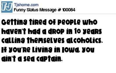 X says Getting tired of people who haven't had a drop in 10 years calling themselves alcoholics. If you're living in Iowa, you ain't a sea captain.