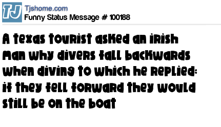 X is a texas tourist asked an irish man why divers fall backwards when diving to which he replied: if they fell forward they would still be on the boat