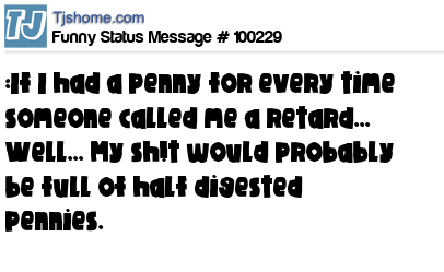 X is :If I had a penny for every time someone called me a retard... Well... My sh!t would probably be full of half digested pennies.