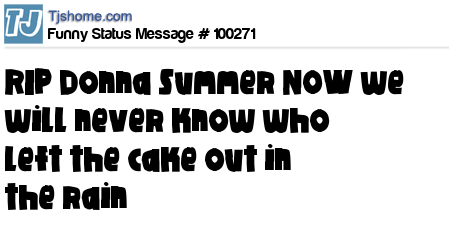 X is RIP Donna Summer NOW we will never know who left the cake out in the rain