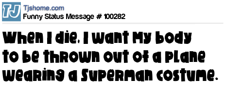 - # 5339 when I die I want to be thrown out of an aeroplane wearing a superman costume