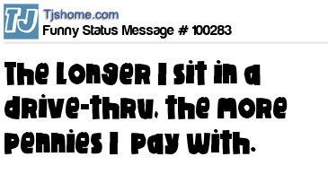 - # 60960 The longer I sit in a drive-thru, the more pennies I'm gonna pay with.