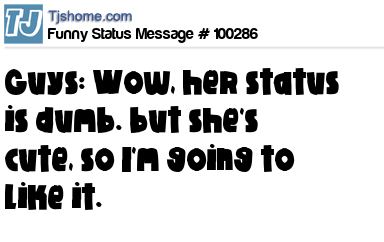 X is Guys: Wow, her status is dumb. but she's cute, so I'm going to like it.