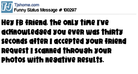 X  Hey FB friend, the only time I've acknowledged you ever was thirty seconds after I accepted your friend request I scanned through your photos with negative results.