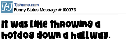 - # 44824 look, I'm not mad that you're sleeping with my ex...I'm just wondering why you'd want to feel like you're throwing a hotdog down a hallway?