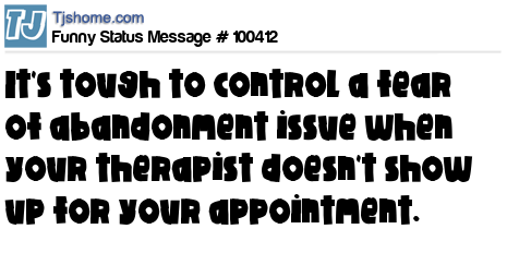 X says It's tough to control a fear of abandonment issue when your therapist doesn't show up for your appointment.