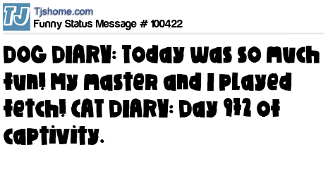 - # 95395 Dog's diary = me and my master played all day! Cat's diary = day 154 of captivity.