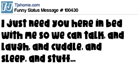 X says I just need you here in bed with me so we can talk, and laugh, and cuddle, and sleep, and stuff…