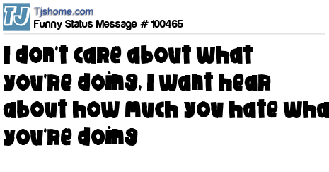 X I don't care about what you're doing, I want hear about how much you hate what you're doing
