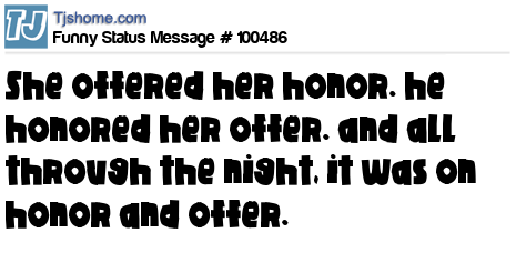 X she offered her honor. he honored her offer. and all through the night, it was on honor and offer.
