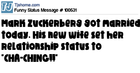 X is Mark Zuckerberg got married today. His new wife set her relationship status to "CHA-CHING!!"