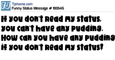 X If you don't read my status, you can't have any pudding. How can you have any pudding if you don't read my status?