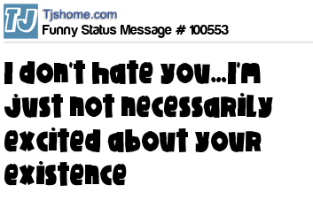 - # 68274 I don't hate you, I just don't appreciate your existence.
