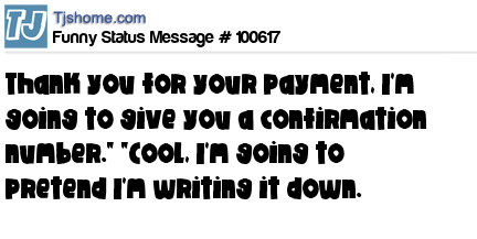 X is Thank you for your payment, I'm going to give you a confirmation number." "Cool, I'm going to pretend I'm writing it down.