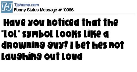 X Have you noticed that the "lol" symbol looks like a drowning guy? I bet hes not laughing out loud
