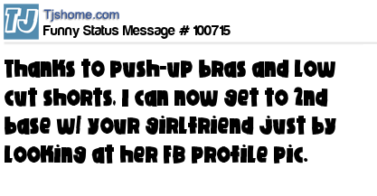 X is Thanks to push-up bras and low cut shorts, I can now get to 2nd base w/ your girlfriend just by looking at her FB profile pic.