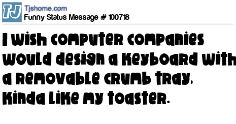 - # 141886 I wish computer companies would design a keyboard with a removable crumb tray, kinda like my toaster