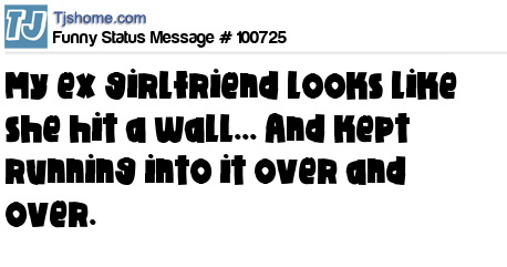 X says My ex girlfriend looks like she hit a wall... And kept running into it over and over.