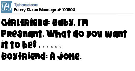 - # 86483 WOMAM: OMG! Baby I'm pregnant!! What would you want it to be?? MAN: a god damn joke!