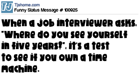 X When a job interviewer asks, "Where do you see yourself in five years?", it's a test to see if you own a time machine.