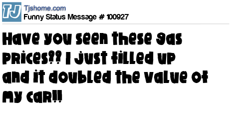 X says Have you seen these gas prices?? I just filled up and it doubled the value of my car!!
