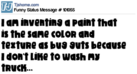 X I am inventing a paint that is the same color and texture as bug guts because I don't like to wash my truck...