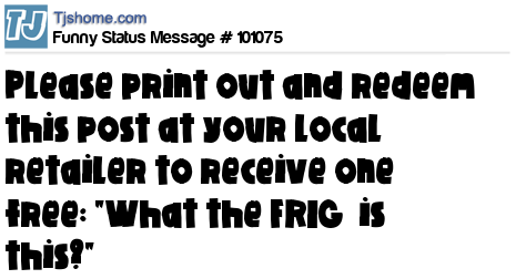 X Please print out and redeem this post at your local retailer to receive one free: "What the FRIG is this?"
