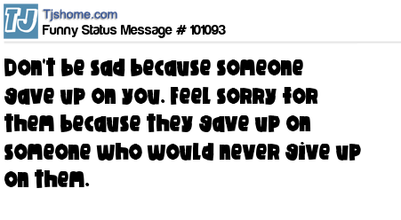 X is Don't be sad because someone gave up on you. Feel sorry for them because they gave up on someone who would never give up on them.