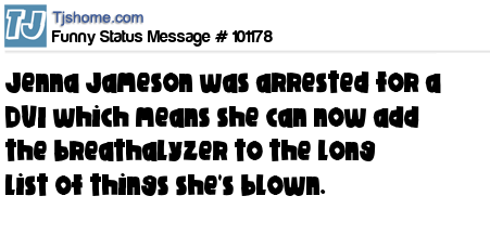 X Jenna Jameson was arrested for a DUI which means she can now add the breathalyzer to the long list of things she's blown.