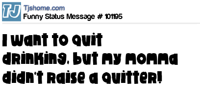 X is I want to quit drinking, but my momma didn't raise a quitter!