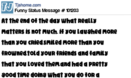X at the end of the day what really matters is not much. if you laughed more than you cried,smiled more than you frowned,told your friends and family that you loved them,and had a pretty good time doing what you do for a living,then it was a good day. go to