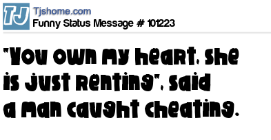 X says "You own my heart, she is just renting", said a man caught cheating.