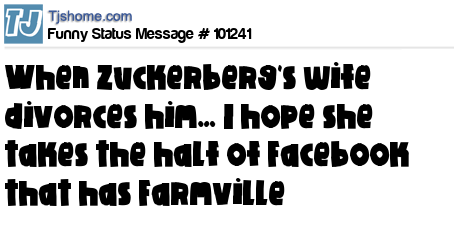 X is When Zuckerberg's wife divorces him… I hope she takes the half of Facebook that has Farmville