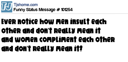 - # 192125 The difference between men and women is that men insult each other but don't really mean it and women compliment each other but don't really mean it.