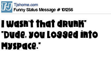 X is I wasn't that drunk" "Dude, you logged into Myspace."