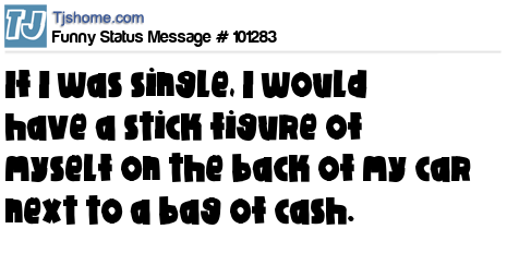 X If I was single, I would have a stick figure of myself on the back of my car next to a bag of cash.