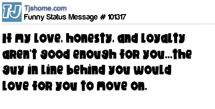 X is If my love, honesty, and loyalty aren't good enough for you...the guy in line behind you would love for you to move on.