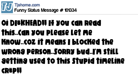 X Oi DI#KHEAD!! If you can read this..Can you please let me know..coz it means I blocked the wrong person..Sorry bud..I'm still getting used to this Stupid timeline cr#p!!