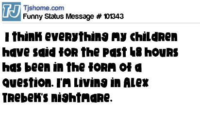 X I think everything my children have said for the past 48 hours has been in the form of a question. I'm living in Alex Trebek's nightmare.