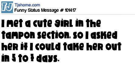 - # 109965 I met a cute girl in the tampon aisle today... so I asked if she'd be free to go out for dinner in 5-7 days...