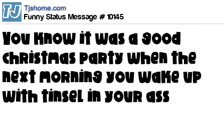 - # 142599 You know it was a good christmas party when the next morning you wake up with tinsel in your ass.