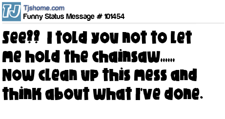 X See?? I told you not to let me hold the chainsaw,,,,,, Now clean up this mess and think about what I've done.