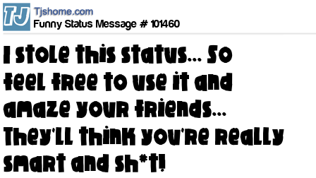 X I stole this status... So feel free to use it and amaze your friends... They'll think you're really smart and sh*t!