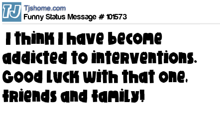 X I think I have become addicted to interventions. Good luck with that one, friends and family!