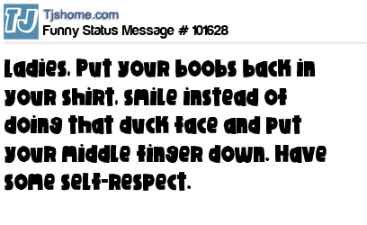 X is Ladies, Put your boobs back in your shirt, smile instead of doing that duck face and put your middle finger down. Have some self-respect.