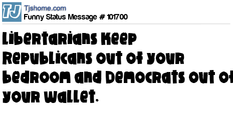 X says Libertarians keep Republicans out of your bedroom and Democrats out of your wallet.