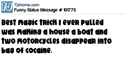 X Best magic trick I ever pulled was making a house a boat and two motorcycles disappear into bag of cocaine.