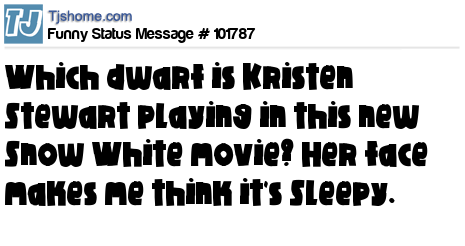 X says Which dwarf is Kristen Stewart playing in this new Snow White movie? Her face makes me think it's Sleepy.