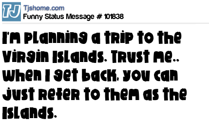 - # 130687 I once visited The Virgin Islands. When I left, they were just called The Islands.